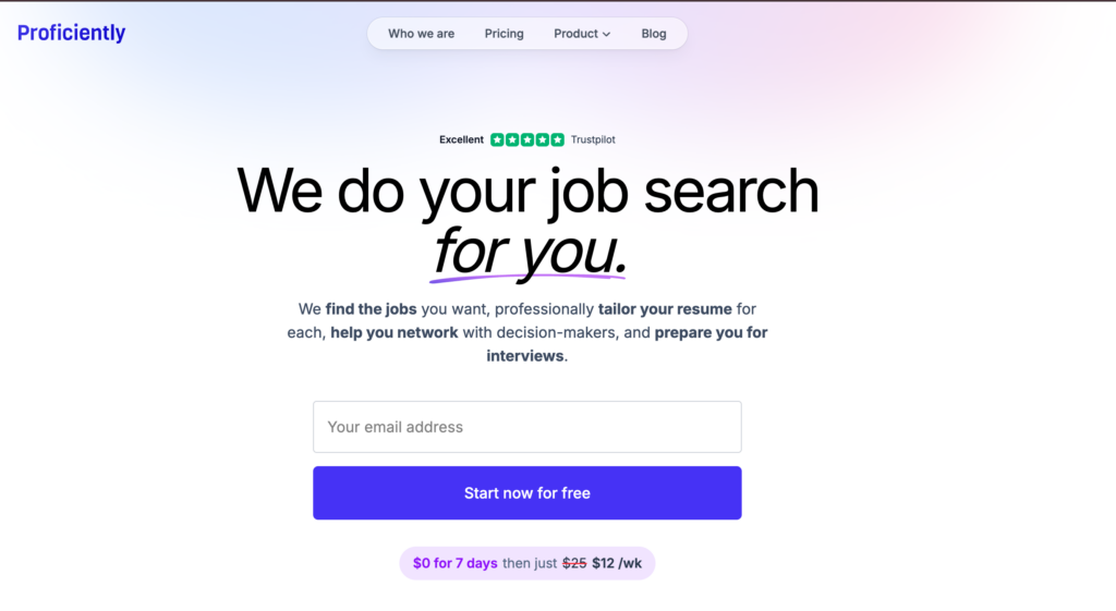 Proficiently is a personal job search agent that helps you land interviews faster while doing less. After you share your goals and constraints, Proficiently searches thousands of sources and filters millions of postings to deliver only high‑likelihood roles that match your skills and preferences. For each opportunity, the team produces ATS‑friendly, keyword‑optimized resumes and tailored cover letters that highlight your most relevant achievements AND will apply to jobs for you. Beyond applications, Proficiently helps you connect with decision‑makers by identifying likely hiring managers and drafting outreach messages to start meaningful conversations. When interviews arrive, you receive structured preparation: expected questions, narrative coaching, mock feedback, and reviews to continuously improve. The service also optimizes your LinkedIn profile, provides weekly networking plans, and can coordinate with specialized recruiters so new opportunities start coming to you. Designed to replace endless job‑board scrolling, it prioritizes speed, fit, and measurable outcomes. Start with a 7‑day free trial; making it an accessible, on‑demand partner throughout your search.